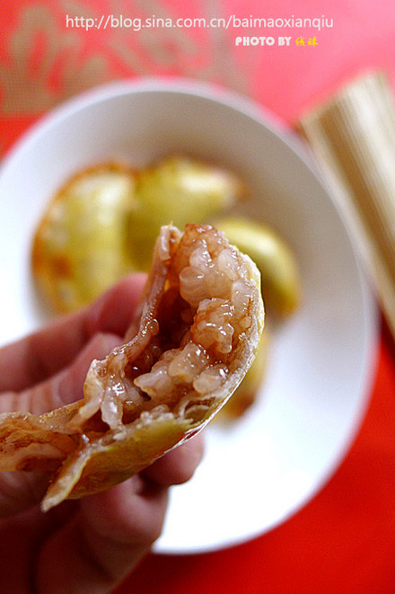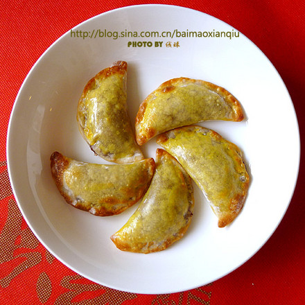 材料:餃子皮15張、圓粒糯米50克、榛仁巧克力醬2勺、雞蛋黃1個步驟:1、糯米提前一夜泡上,之後入鍋蒸上30至40分鐘,至熟;2、將蒸熟的糯米取出放入調料碗中,加入巧克力醬,拌勻之後做餡料;3、烤箱190℃預熱;4、取適量糯米巧克力醬餡料放入餃子皮中,折成月牙狀,緊實捏合起來,順序放入烤盤中,每隻上方均勻刷上蛋液,將烤盤放入預熱的烤箱中;