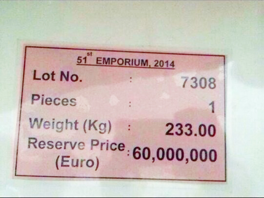 233公斤,木那料,標價6000萬歐元,匯率1:8.8 人民幣5億2800萬(這還是底標價,不含關稅,如果加上33%的關稅,總價值7億人民幣)
